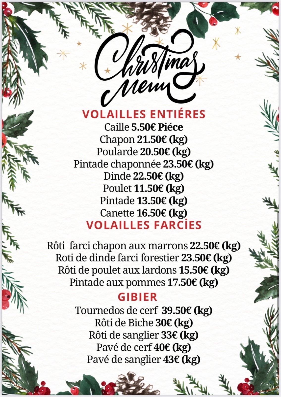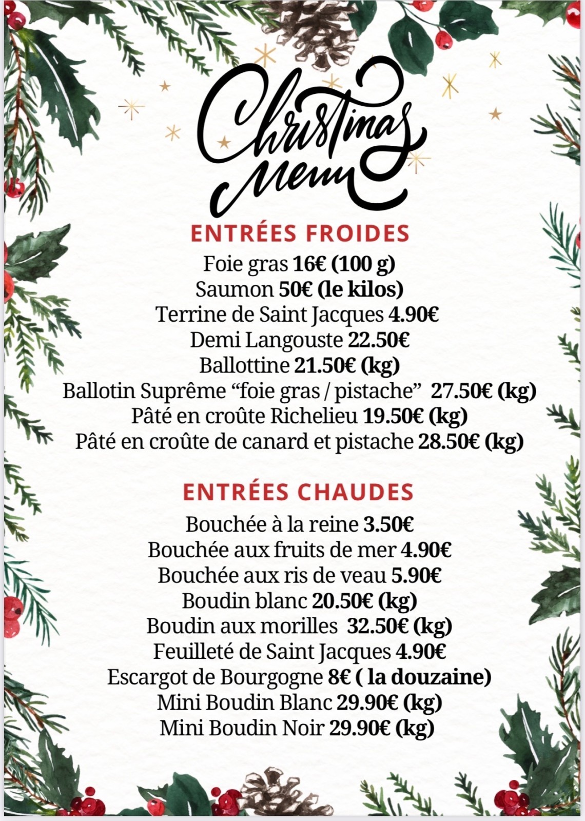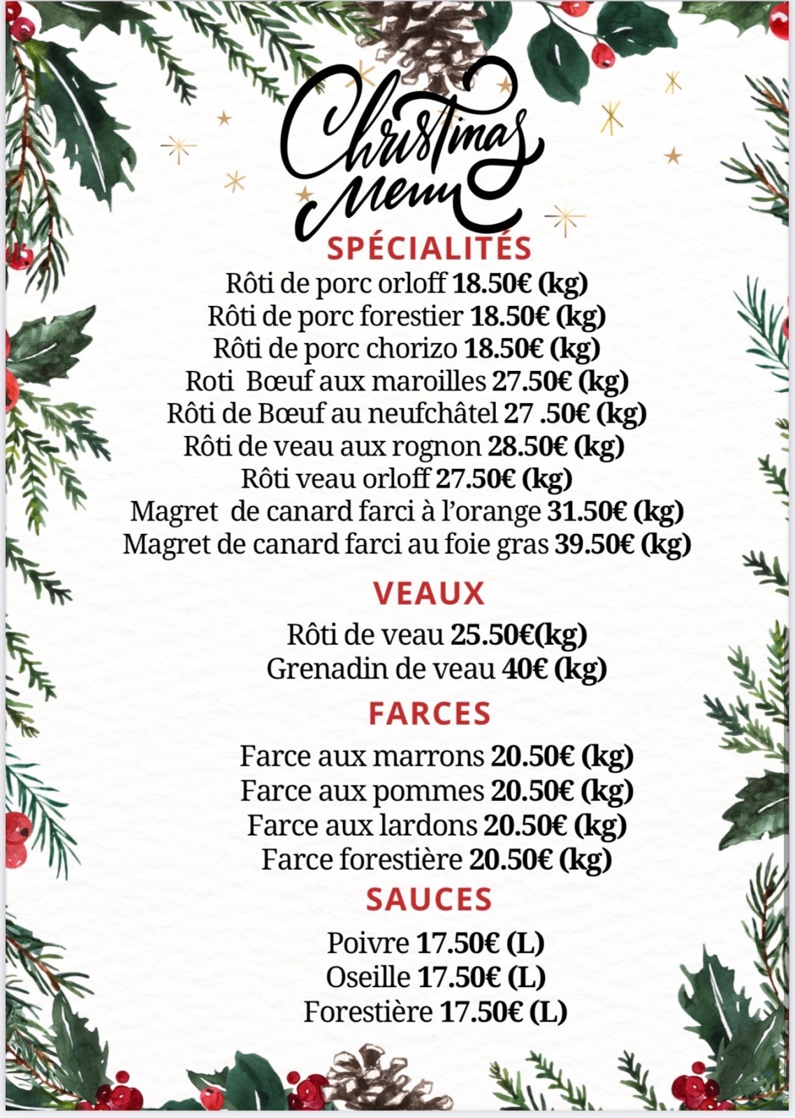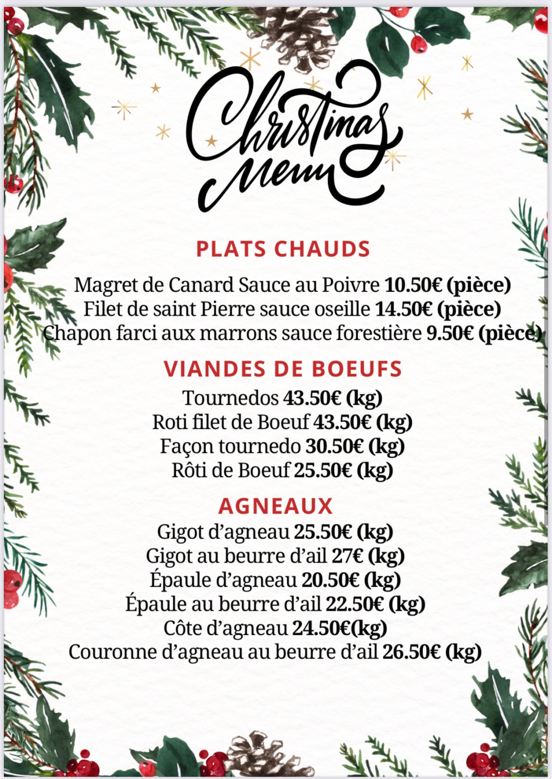 Pour cette période de fêtes, offrez à vos proches un repas d'exception. Nos bouchers ont préparé un menu spécial Noël, avec des produits de qualité, soigneusement choisis pour ravir vos papilles.